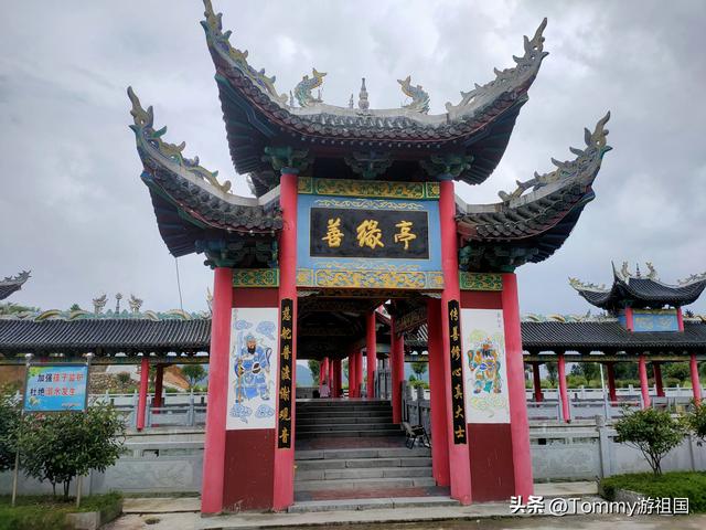 凉亭里可以休息,两边有凳子可坐,亭子的上方画有龙凤,还有书法。听说这些亭子是老百姓自己出钱出力修建的,为了纪念一个姓谢的婆婆,所以亭子命名为善缘亭。