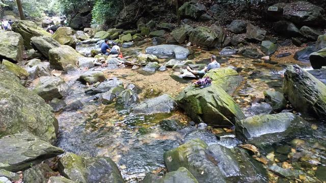 12:30购票进入景区开始徒步,来回全程8.2公里。一路上感受满满的负氧离子,可坐景区观光车直接到宝鼎园/蝴蝶谷/庆云寺,每个站点都可上下车(坐电瓶车上山的,下山只需要走4公里左右)。
